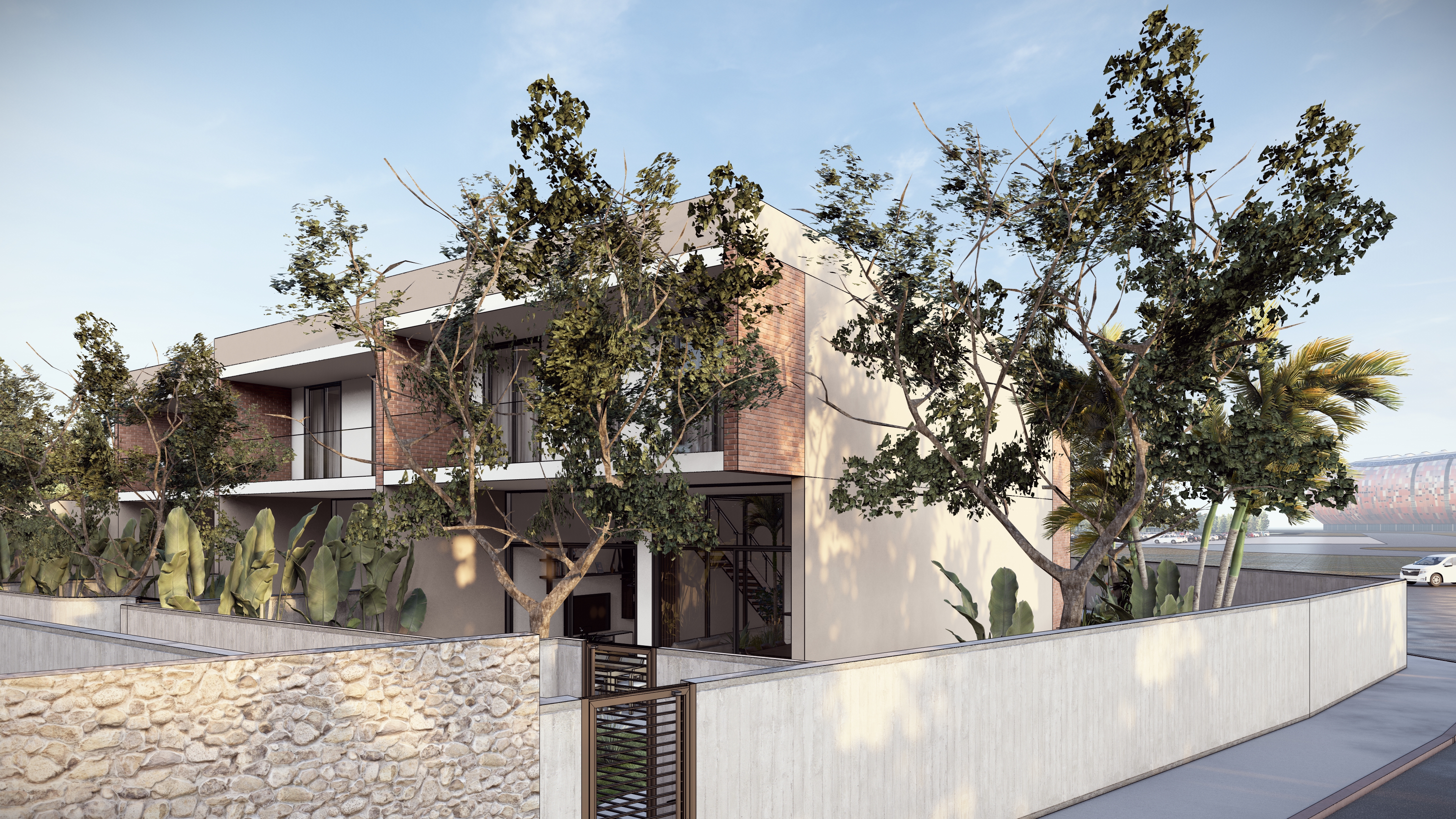 signatures est un ensemble exclusif de trois maisons de ville haut de gamme, alliant une architecture raffinée à des finitions d’exception. Chaque villa propose de vastes espaces de vie et intègre un jardin intérieur sous verrière inspiré des lignes modernes du stade d’Olembe. Le design progressiste marie avec élégance l’art de vivre camerounais à une richesse architecturale internationale, pour créer un lieu de vie à la fois contemporain, enraciné et ouvert sur le monde."